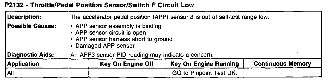 P2132 - Throttle/Pedal Position Sensor/Switch F Circuit Low: