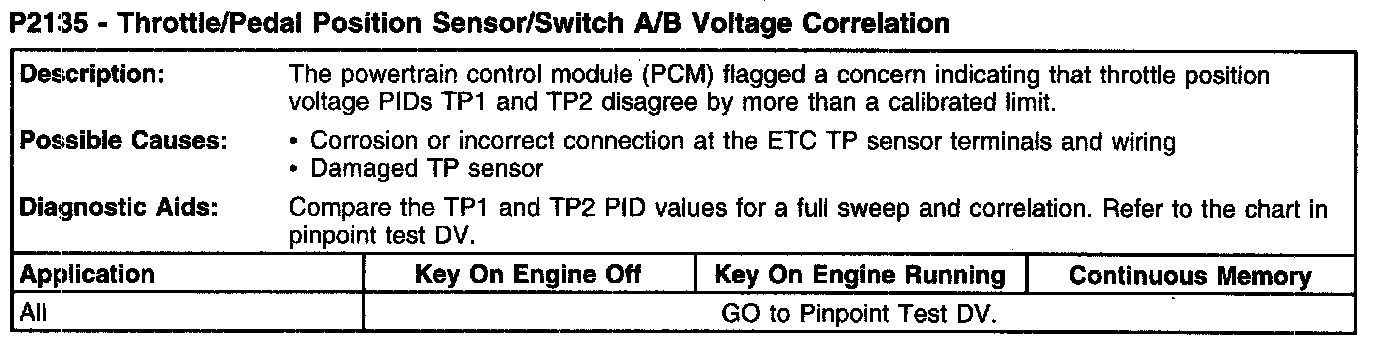 P2135 - Throttle/Pedal Position Sensor/Switch A/B Voltage Correlation:
