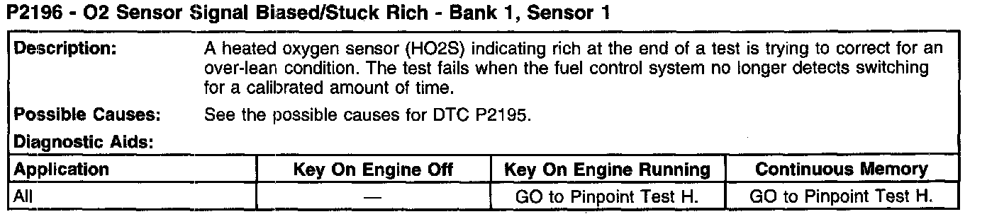 P2196 - O2 Sensor Signal Biased/Stuck Rich - Bank 1, Sensor 1:
