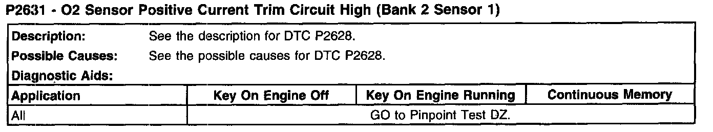 P2631 - O2 Sensor Positive Current Trim Circuit High (Bank 2 Sensor 1):