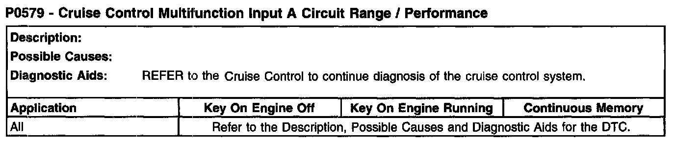 P0579 - Cruise Control Multifunction Input A Circuit Range/Performance: