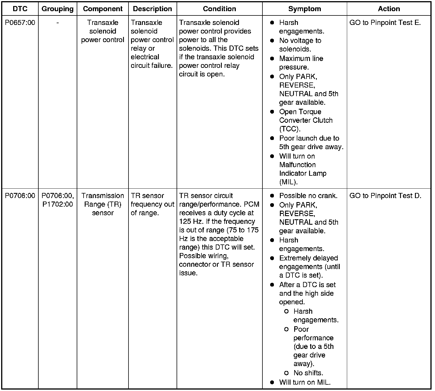NOTE: This module utilizes a 5-character DTC followed by a 2-character failure type code. The failure type code provides information about specific fault conditions such as opens or shorts to ground. Continuous Memory Diagnostic Trouble Codes (CMDTCs) have an additional 2-character DTC status code suffix to assist in determining DTC history.