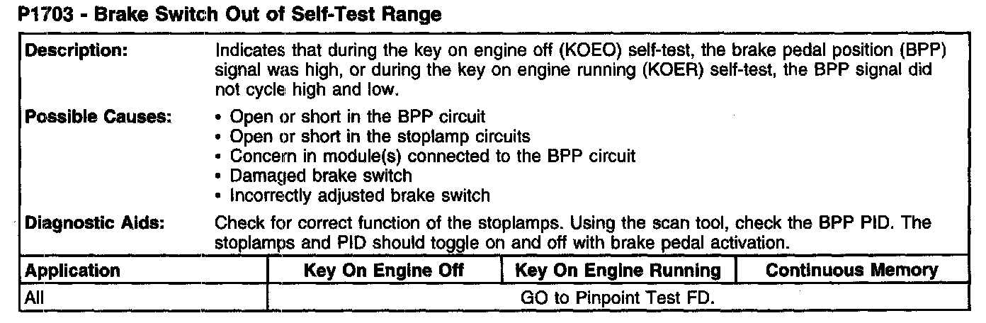 P1703 - Brake Switch Out Of Self-Test Range: