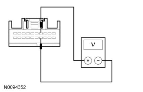 - For Sony(R) sound, while pressing the REPEAT button on the ACM, measure the AC voltage between the audio DSP module C4240c-4, circuit VMN07 (GY), harness side and the audio DSP module C4240c-14, circuit RMN07 (VT), harness side.