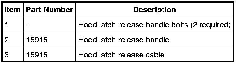 8. Remove the hood latch release handle and cable assembly.