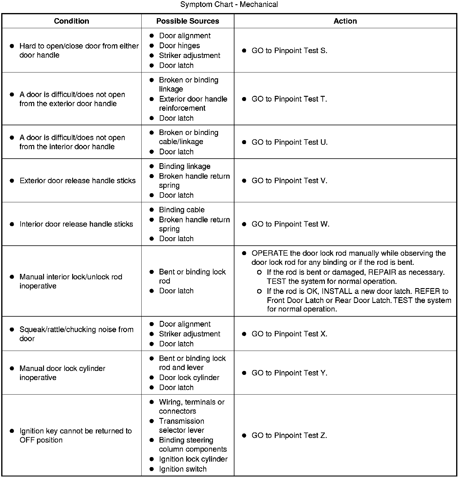 Symptom Chart - Mechanical: