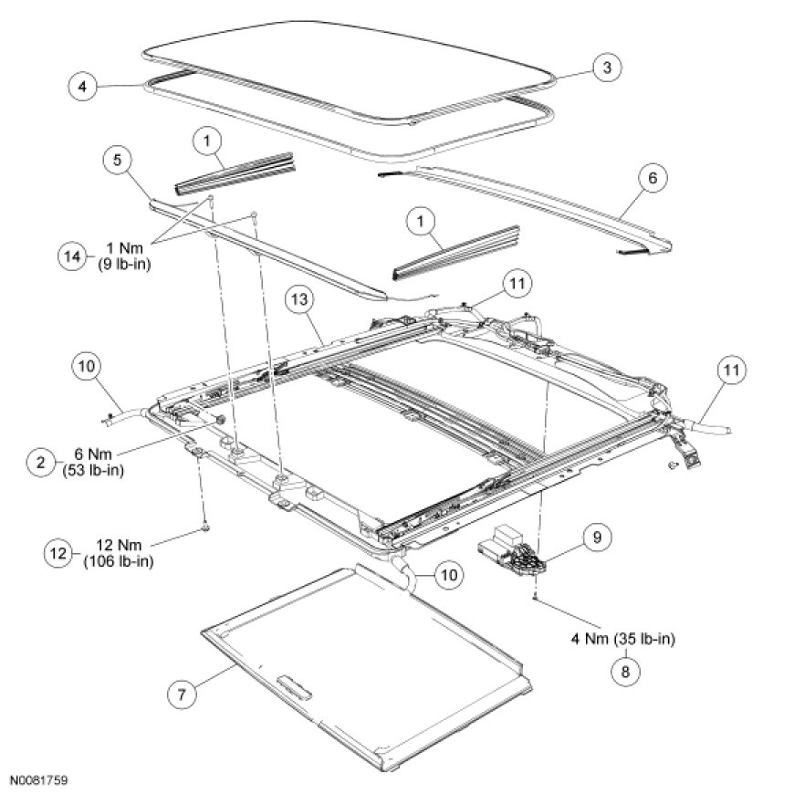 Roof Opening Panel - Exploded View