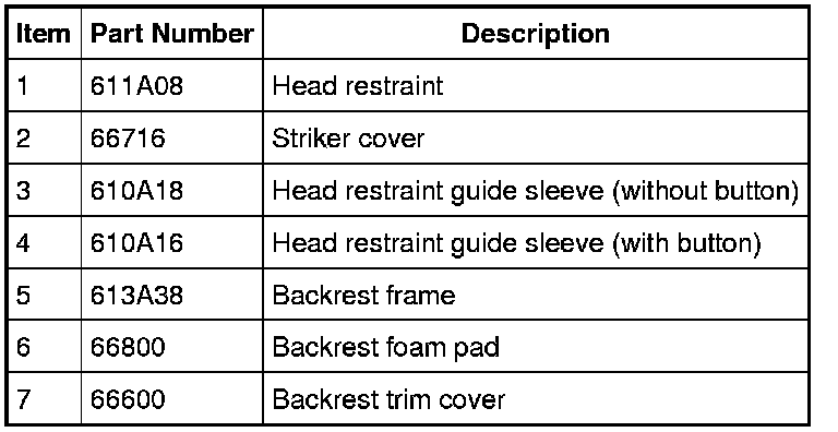 5. NOTE: The head restraint guide sleeves are keyed and will not interchange. To assemble, install the head restraint guide sleeve with the button on the LH side.