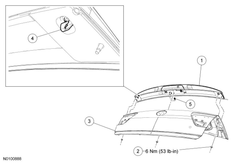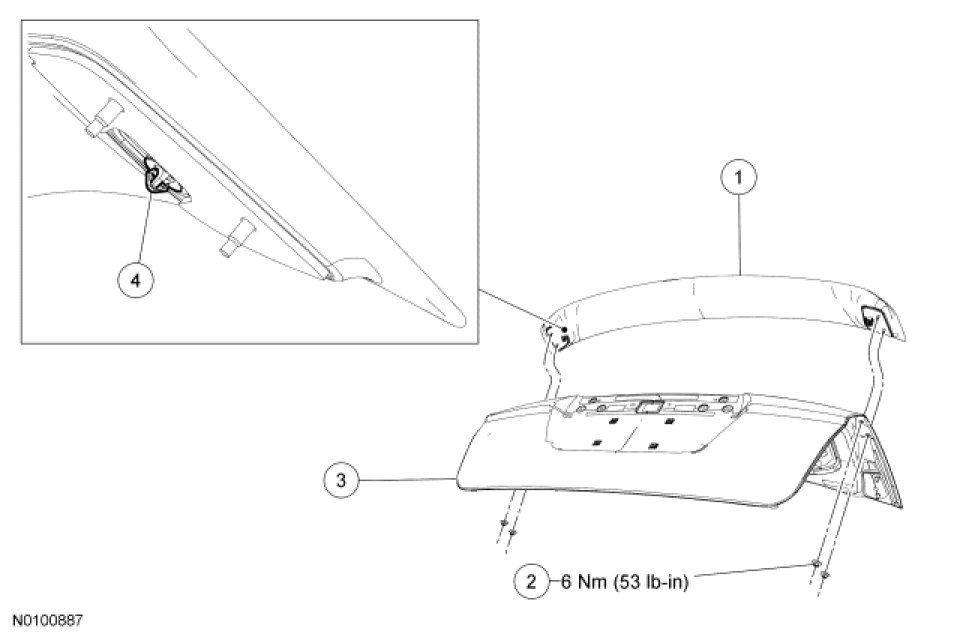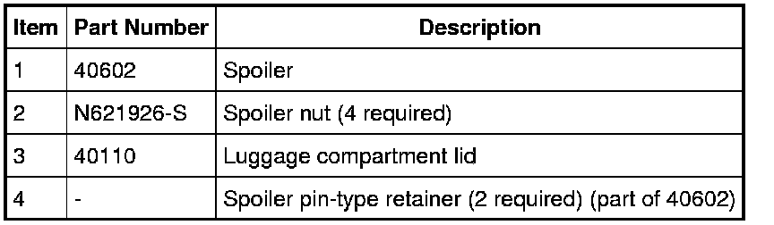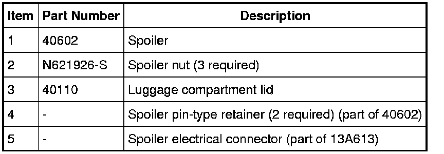 4. NOTE: The spoiler is attached to the luggage compartment lid with double-sided tape. New tape must be installed during installation.