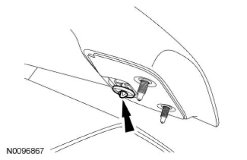 6. Slide a suitable tool between the luggage compartment lid and the spoiler at each end until contact is made with the pin-type retainers. Push in the pin-type retainer and pull up on the spoiler to release the spoiler from the luggage compartment lid.