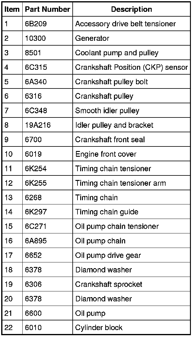 NOTICE: Do not loosen or remove the crankshaft pulley bolt without first installing the special tools as instructed in this procedure. The crankshaft pulley and the crankshaft timing sprocket are not keyed to the crankshaft. The crankshaft, the crankshaft sprocket and the pulley are fitted together by friction, using diamond washers between the flange faces on each part. For that reason, the crankshaft sprocket is also unfastened if the pulley bolt is loosened. Before any repair requiring loosening or removal of the crankshaft pulley bolt, the crankshaft and camshafts must be locked in place by the special service tools, otherwise severe engine damage can occur.