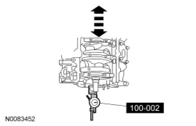 4. Move the crankshaft to the front of the cylinder block. Note and record the crankshaft end play.