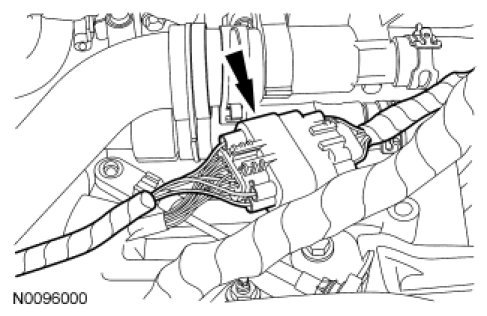 55. If equipped, position the block heater shield aside and disconnect the block heater electrical connector.