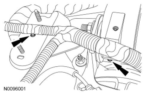 25. Detach the 2 EPAS system wiring harness pin-type retainers from the subframe.
