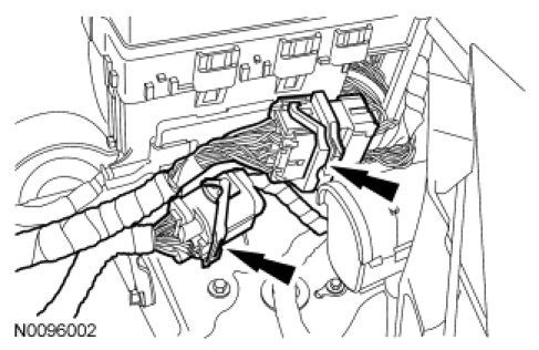 24. Disconnect the 2 Electronic Power Assist Steering (EPAS) system electrical connectors.