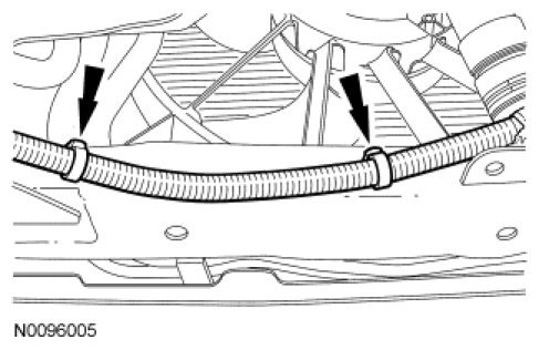 47. Using the Transmission Cooler Line Disconnect Tool, disconnect the 2 transaxle fluid cooler tubes (1 shown).