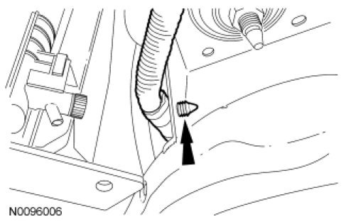 26. Detach the EPAS system wiring harness pin-type retainer from the subframe under the LH fender splash shield.