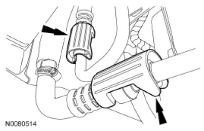 40. Depress the locking ring and disconnect the brake booster vacuum supply tube from the intake manifold.