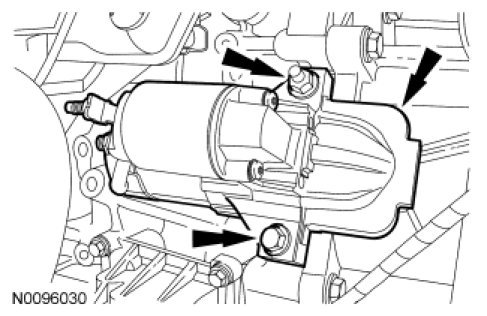 66. Remove the nut and the ground wire from the starter motor stud bolt.