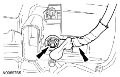 27. Remove the bolt and the EPAS system wiring harness ground.