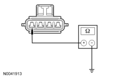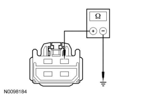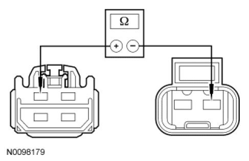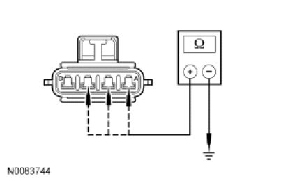 - Measure the resistance between blower motor resistor C1228-D, circuit GD115 (BK/GY), harness side and ground.