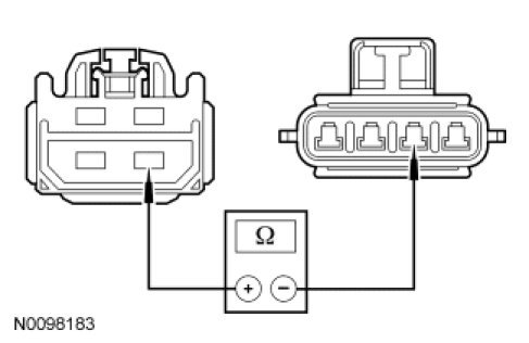 - Measure the resistance between blower motor resister C1228-C, circuit CH426 (YE/OG), harness side and blower motor C288-B, circuit CH426 (YE/OG), harness side.
