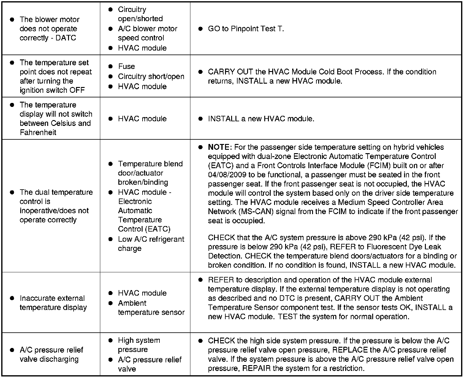 Climate Control SystemSymptom Chart - Climate Control Systems Symptom Chart - Climate Control Systems (Part 1):