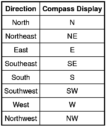 - Position the vehicle and observe the compass display as follows: