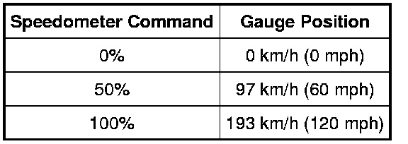 - Select the IPC speedometer (SPDOMETER) active command. Command the speedometer according to the following table while monitoring the speedometer.