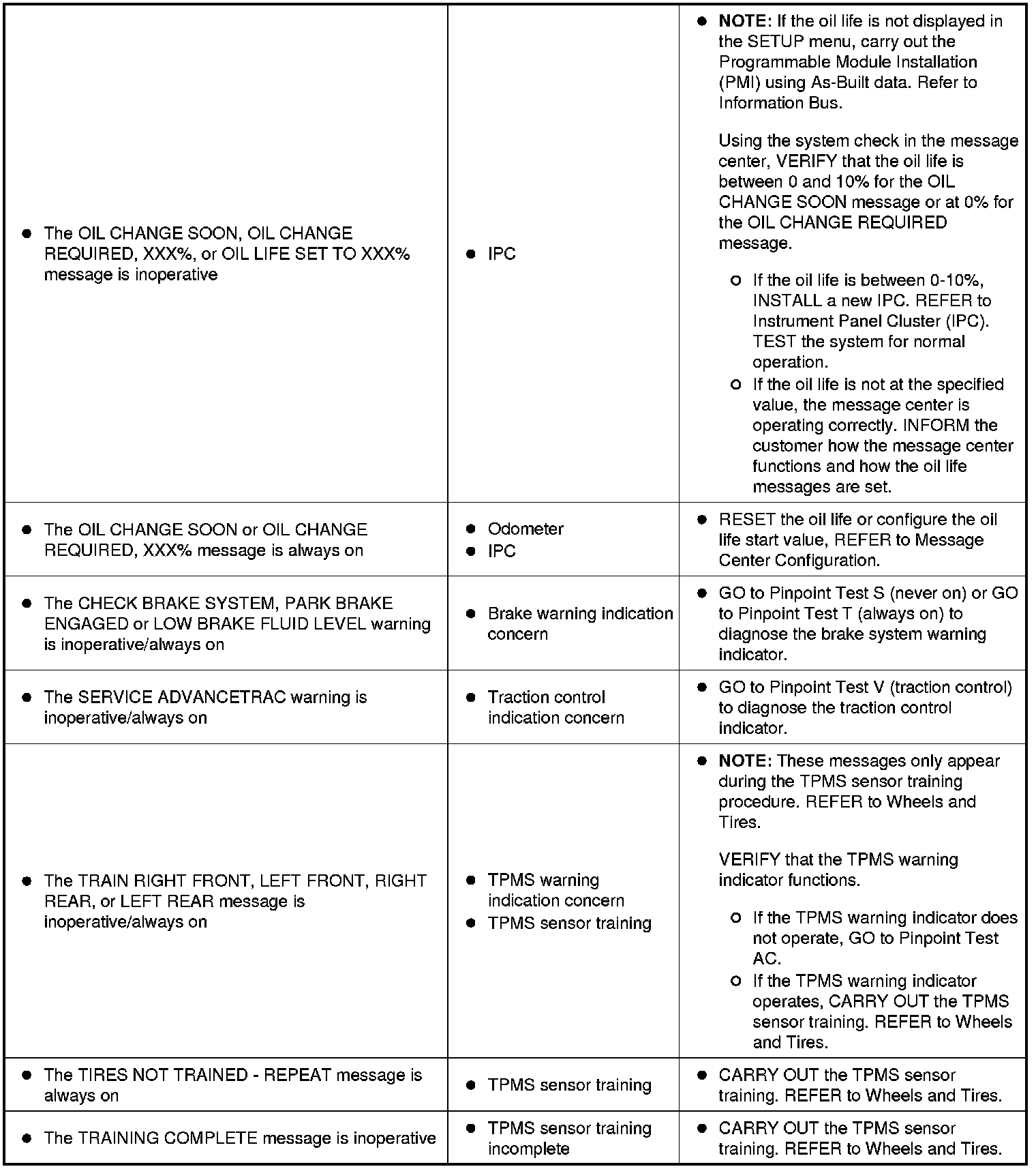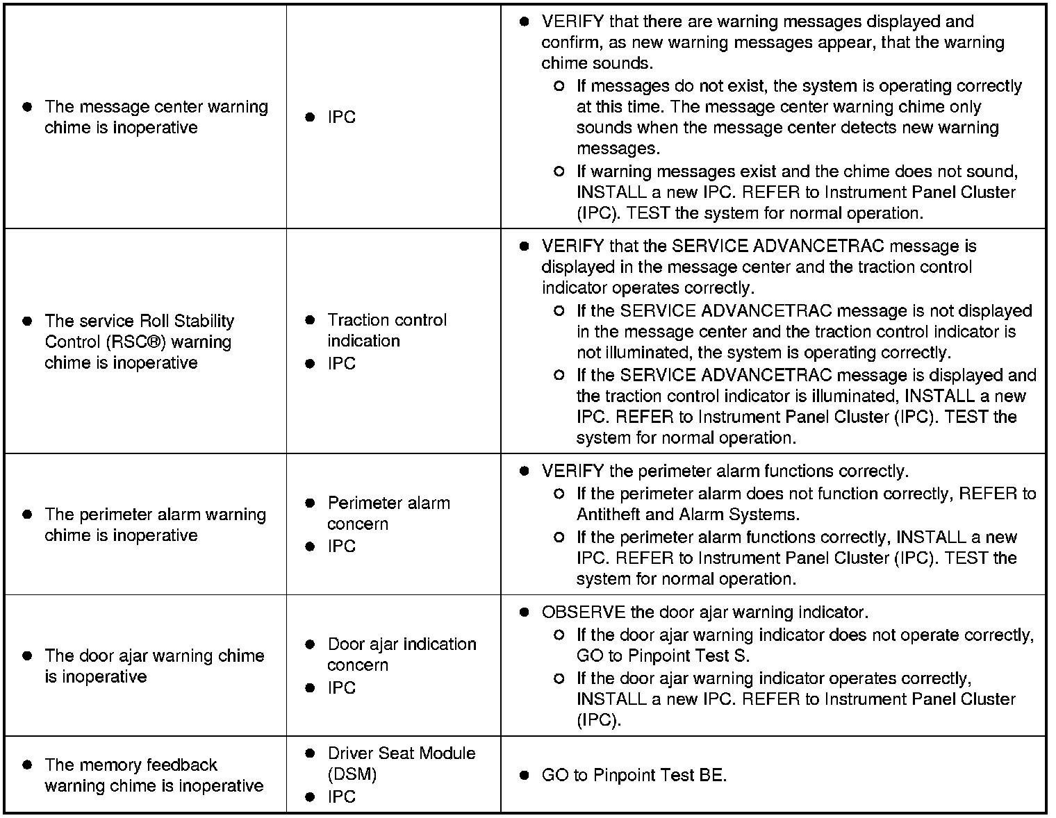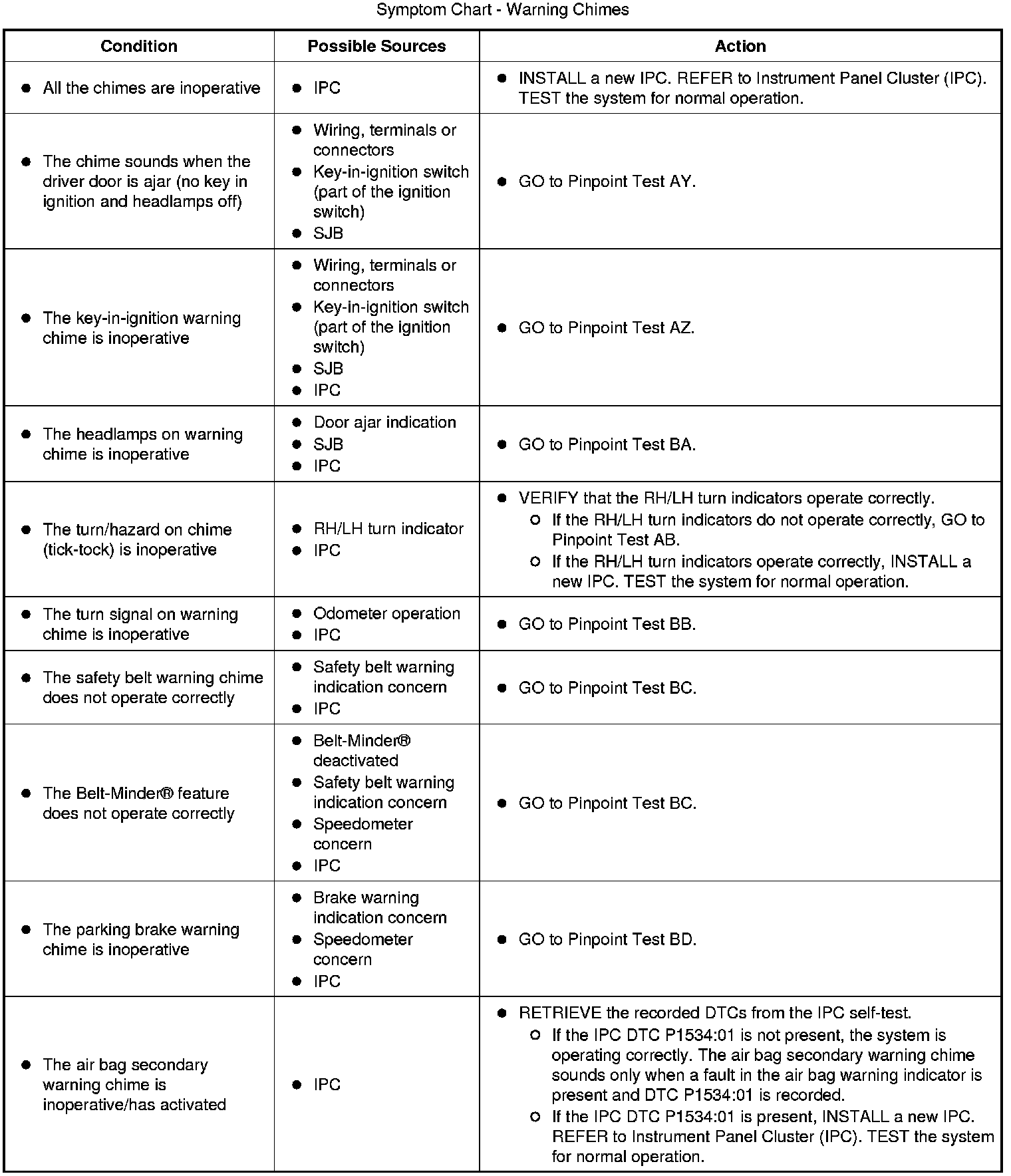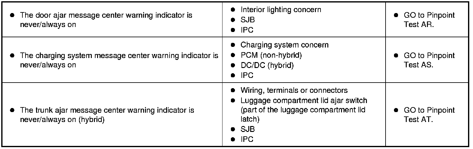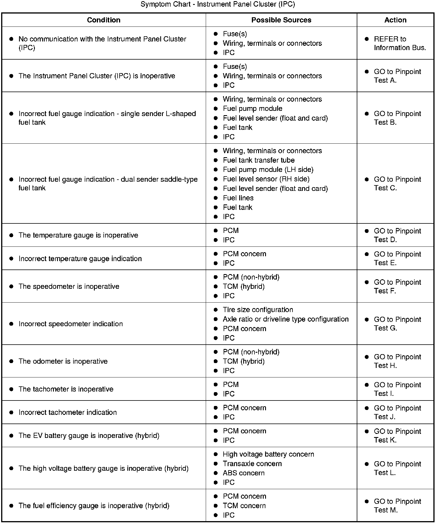 Instrumentation, Message Center and Warning ChimesSymptom Charts Symptom Chart - Instrument Panel Cluster (IPC) (Part 1):