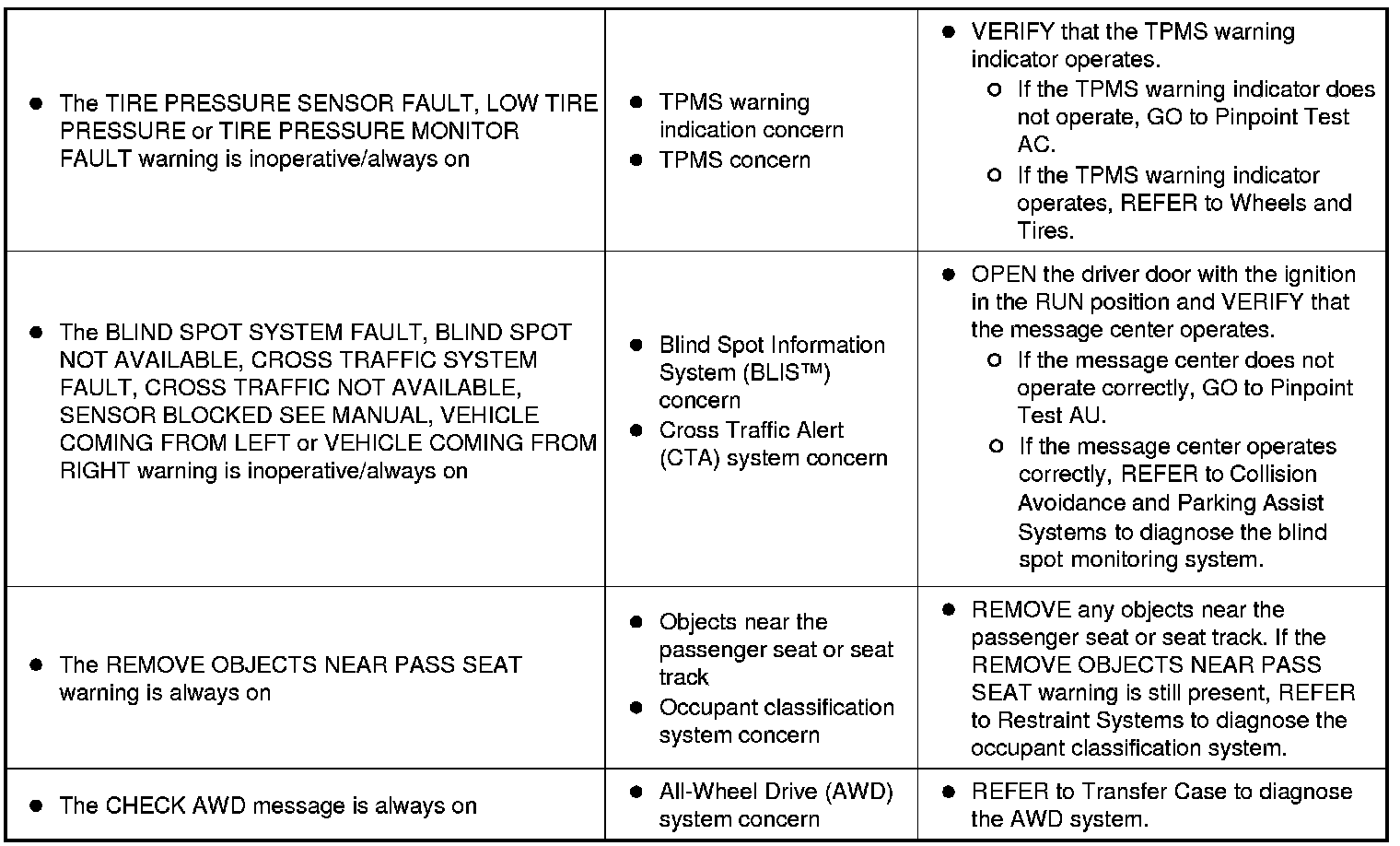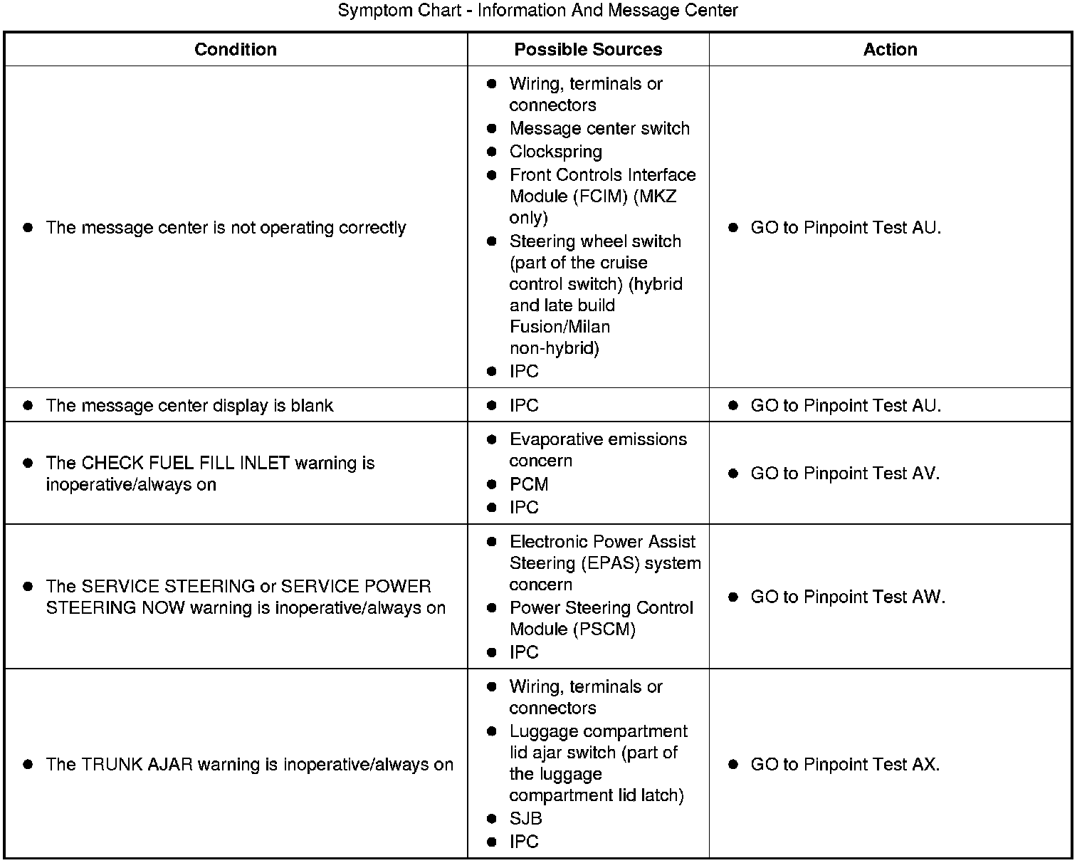 Symptom Chart - Information And Message Center (Part 1):