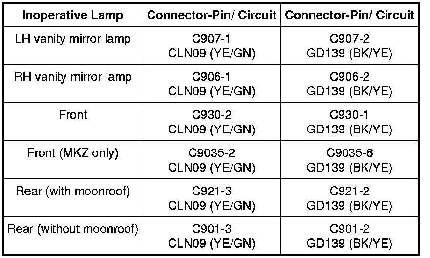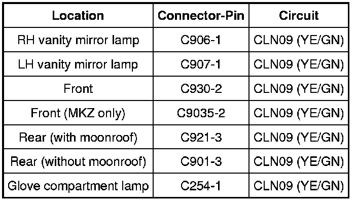 The Smart Junction Box (SJB) supplies voltage to the demand lamps. The demand lamps are grounded through one circuit. The glove compartment lamp (MKZ only) is case grounded.
