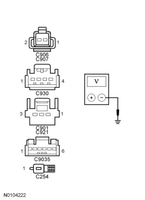 - Measure the voltage between the suspect demand lamp, harness side and ground as follows: