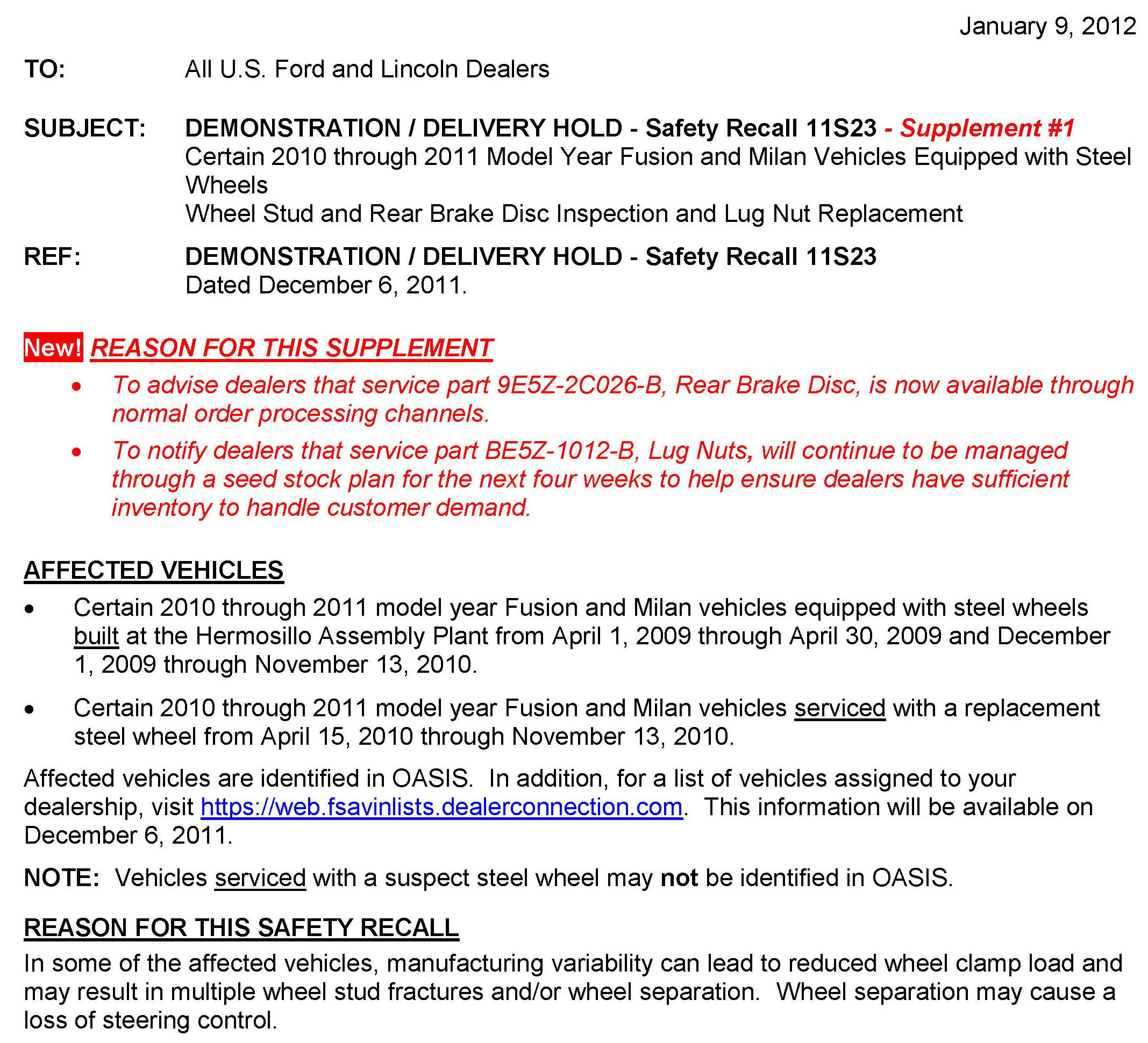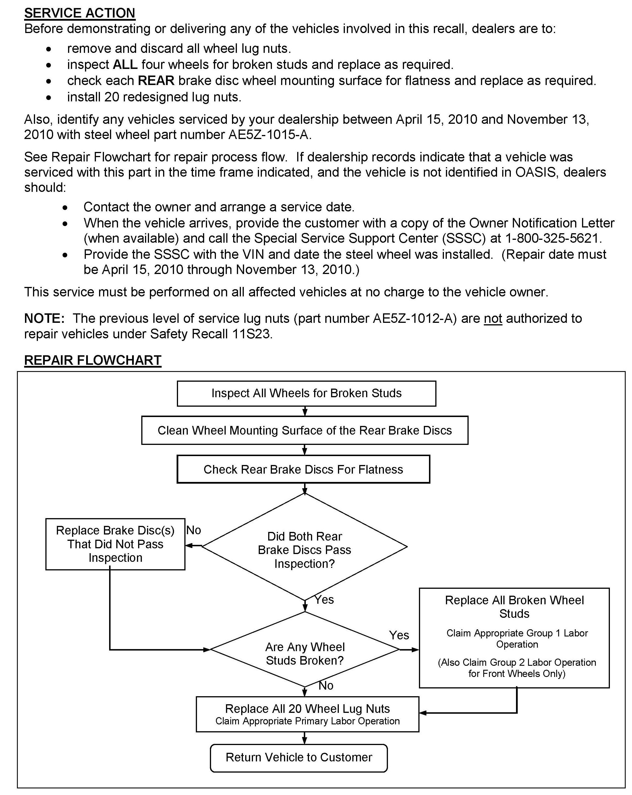 Recall - Wheel Stud and Rear Brake Disc Inspection