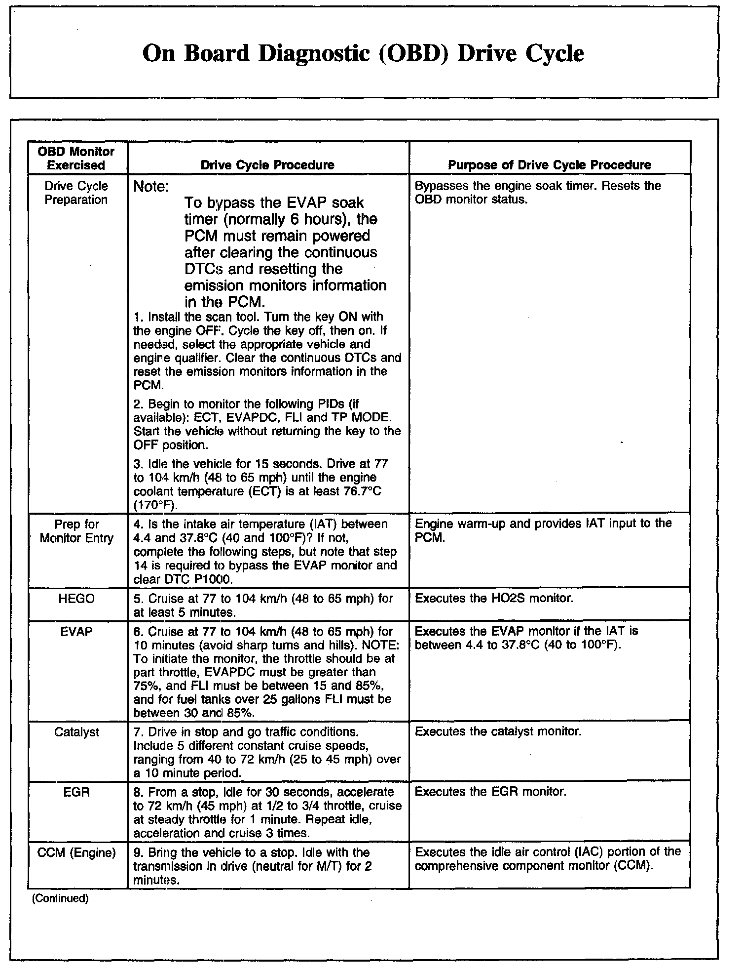 ON BOARD DIAGNOSTIC (OBD) DRIVE CYCLEDescription of On Board Diagnostic (OBD) Drive Cycle