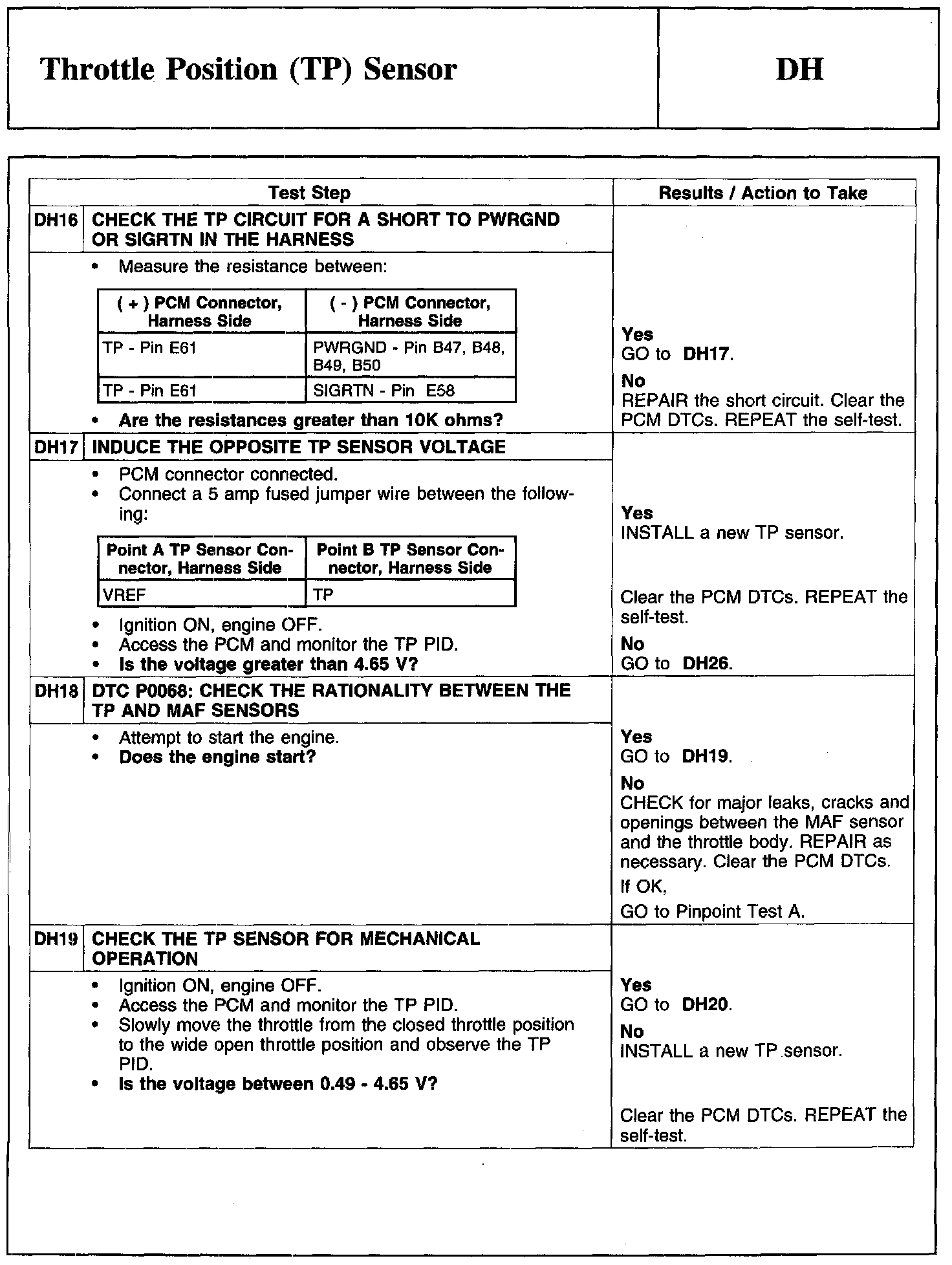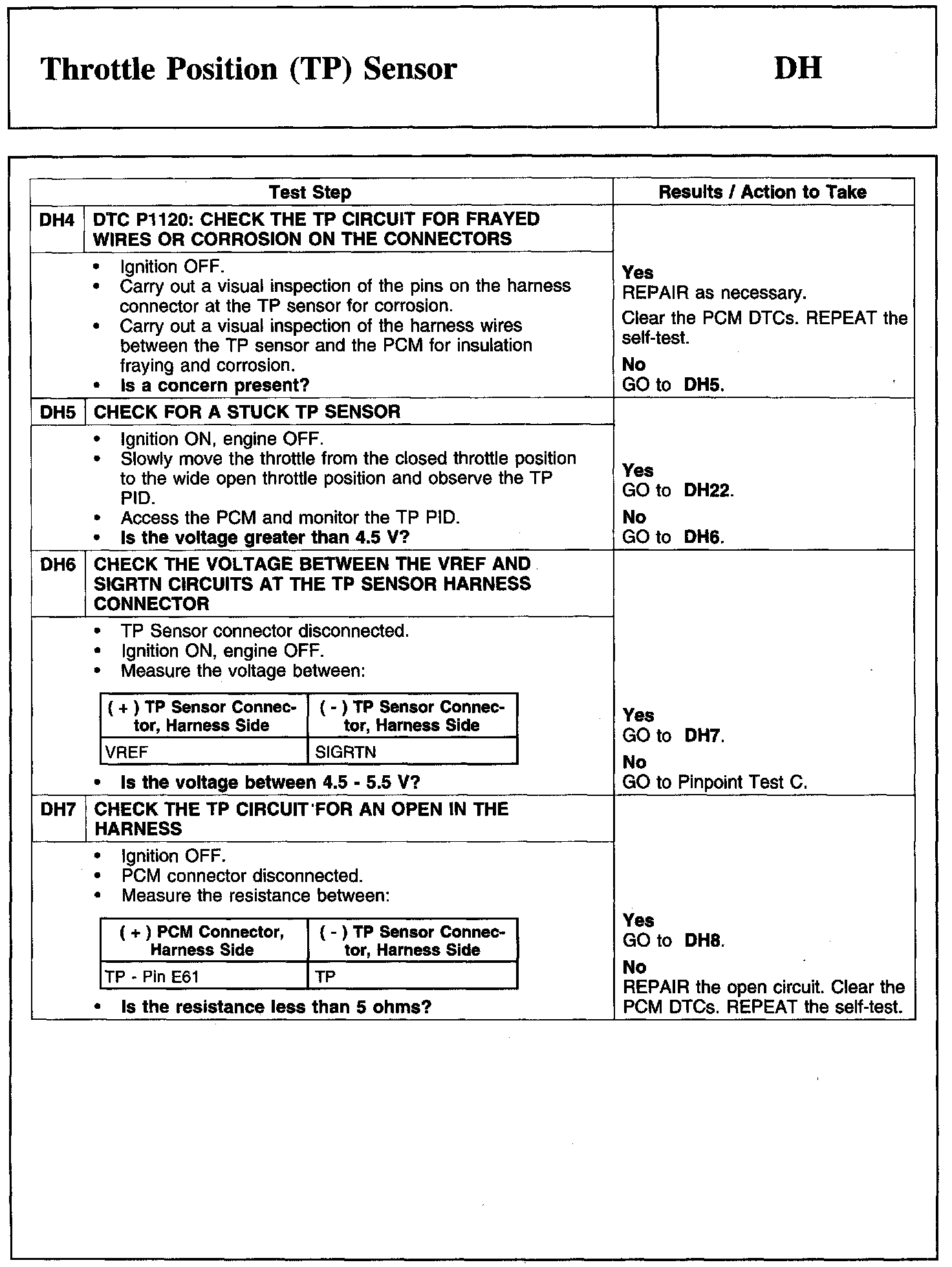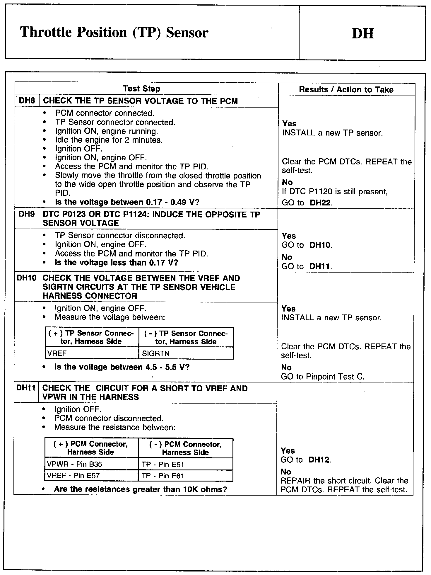 Test DH: Throttle Position (TP) Sensor