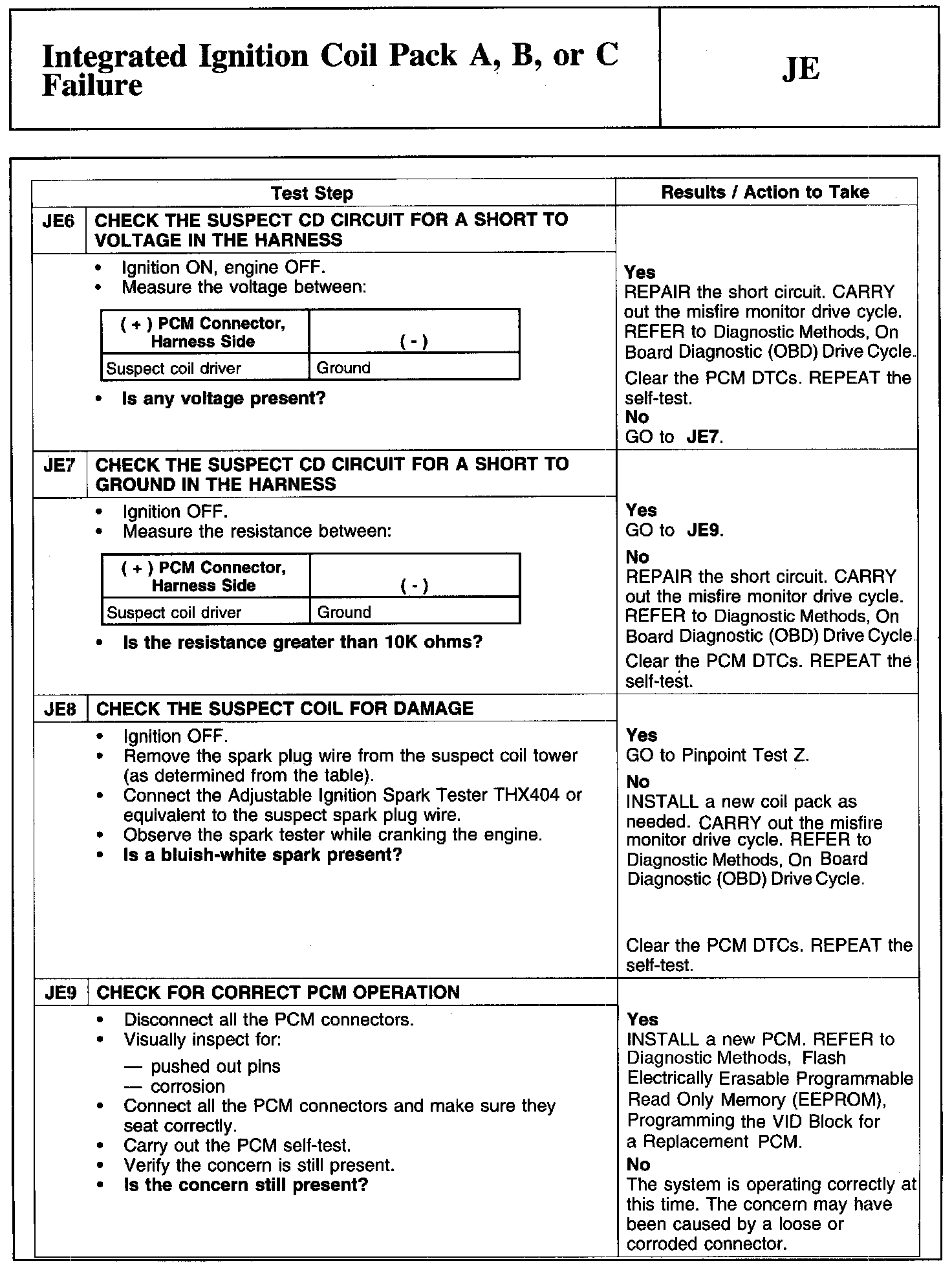 Test JE: Integrated Ignition Coil Pack A, B, or C Failure