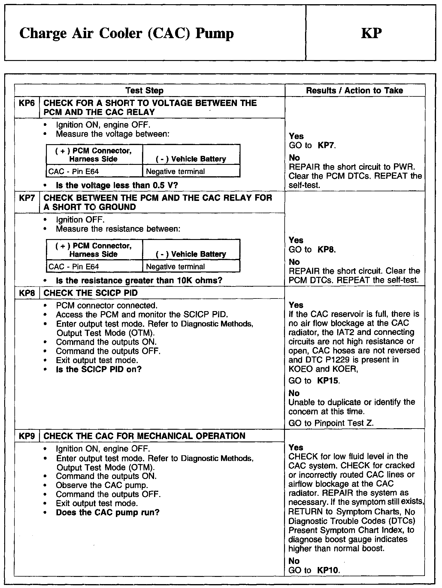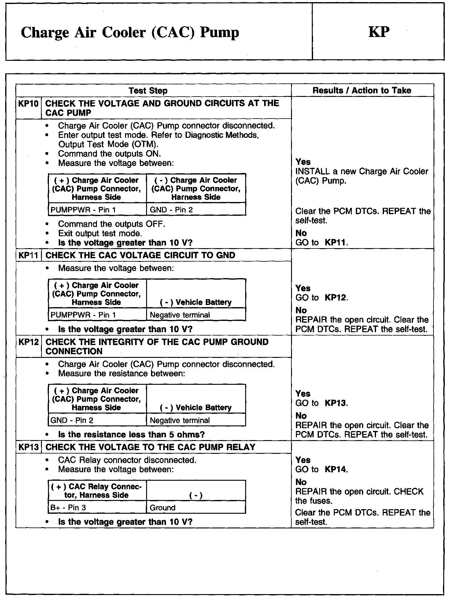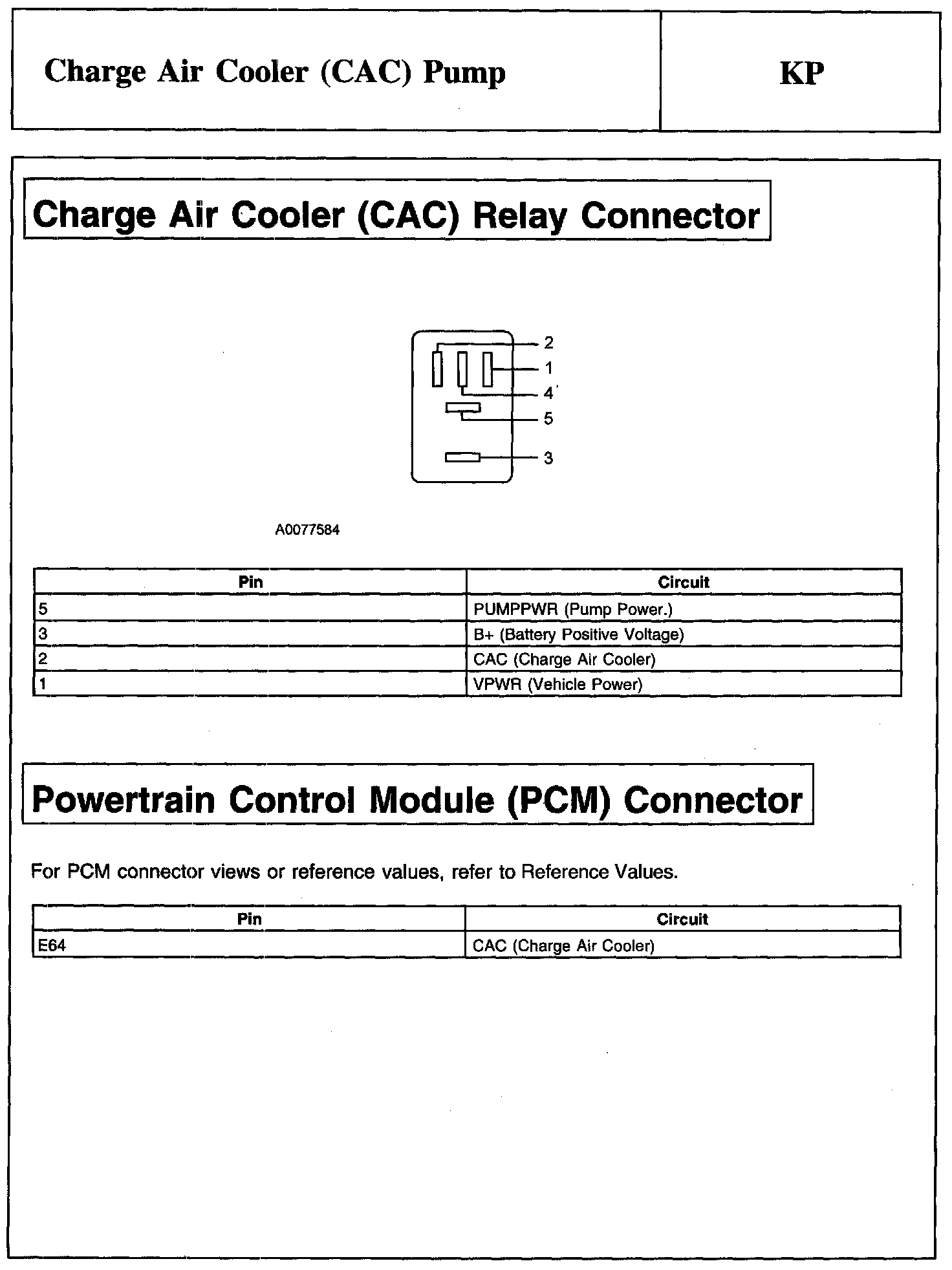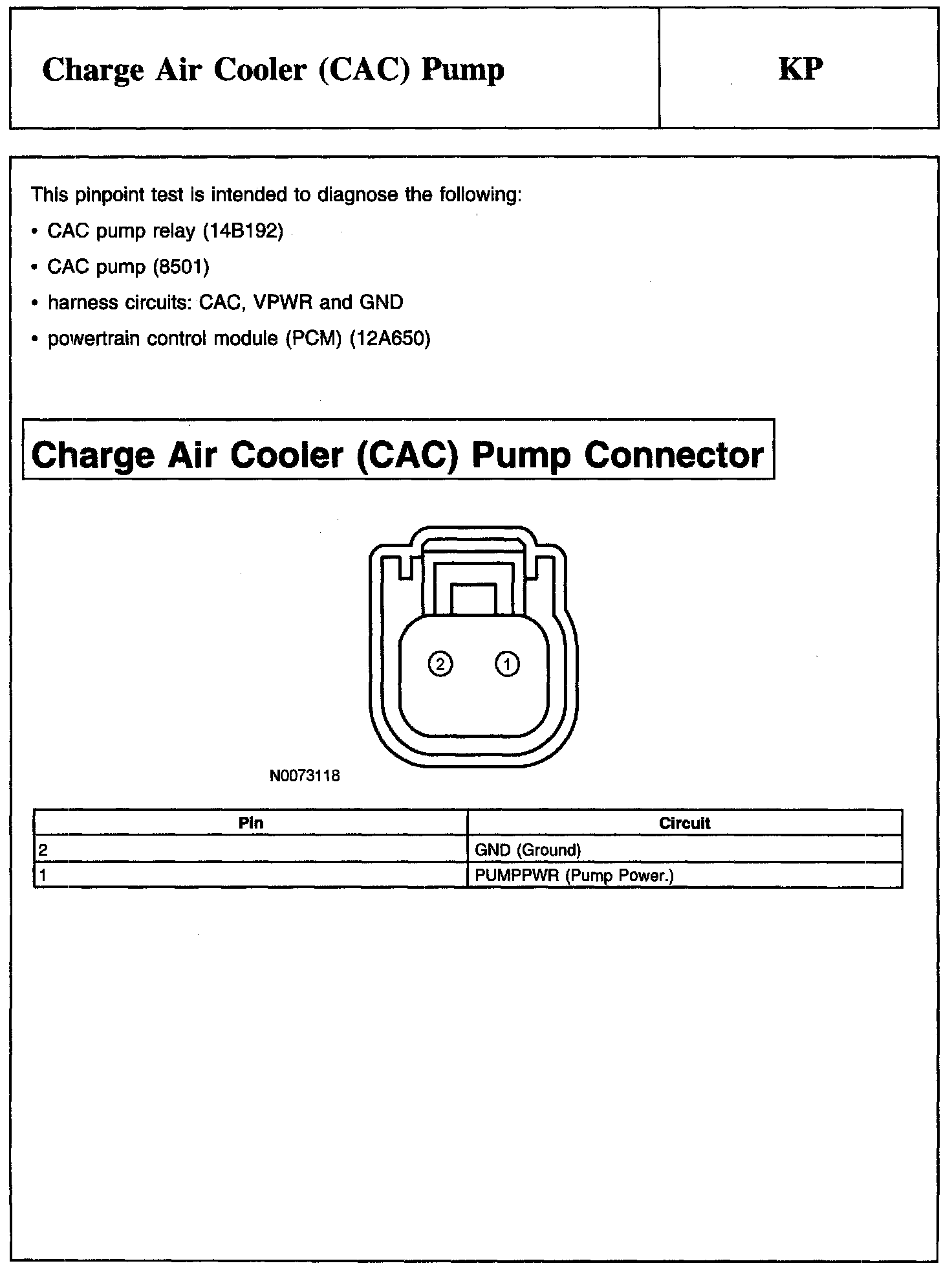 PINPOINT TEST KP: CHARGE AIR COOLER (CAC) PUMPCharge Air Cooler (CAC) Pump Connector: