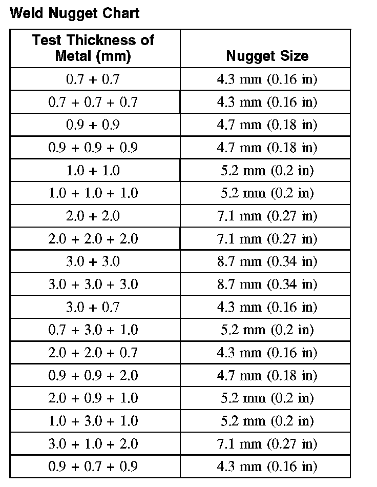 Weld Nugget Chart: