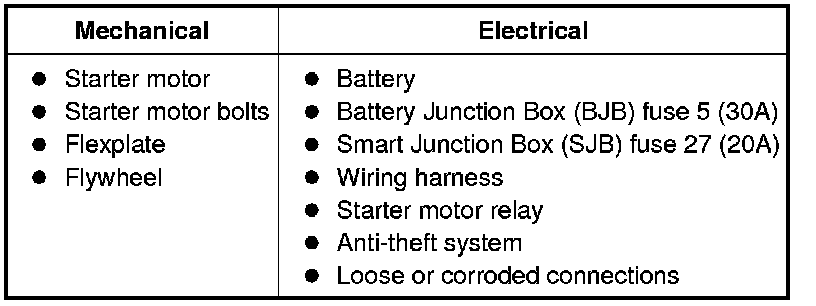 NOTE: The anti-theft system must be functioning correctly before a logical starting system diagnosis can be carried out. Address anti-theft system concerns before continuing. Refer to Antitheft and Alarm Systems.