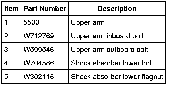 Remove and discard the upper arm inboard bolt and remove the upper arm.