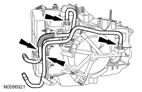 NOTE: If the transaxle was overhauled, or if installing a new transaxle and the transmission fluid cooler has not been flushed, flush the transmission fluid cooler at this time. For additional information, refer to Transmission Fluid Cooler Backflushing and Cleaning Transmission Fluid Cooler Backflushing and Cleaning. Clean the transaxle-mounted transmission fluid cooler tubes by hand.