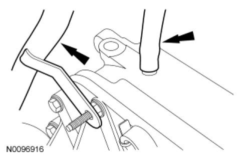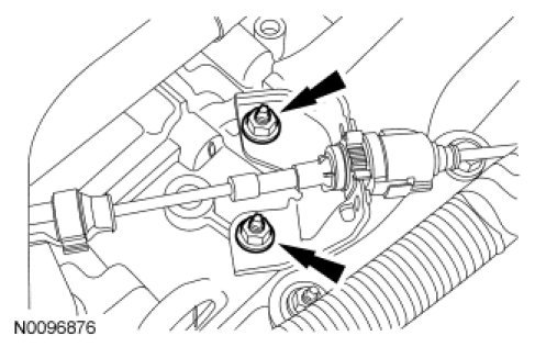 33. Connect the selector lever cable end to the manual control lever with the manual control lever and selector lever in DRIVE. Check selector lever cable adjustment. For additional information, refer to Automatic Transmission/Transaxle.