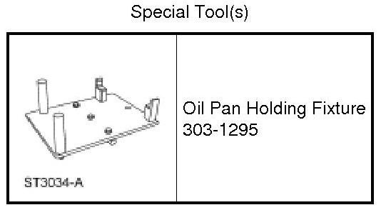 7. NOTICE: The Oil Pan Holding Fixture must be carefully aligned to the mounting bosses on the oil pan. Failure to follow these instructions may result in damage to the oil pan.