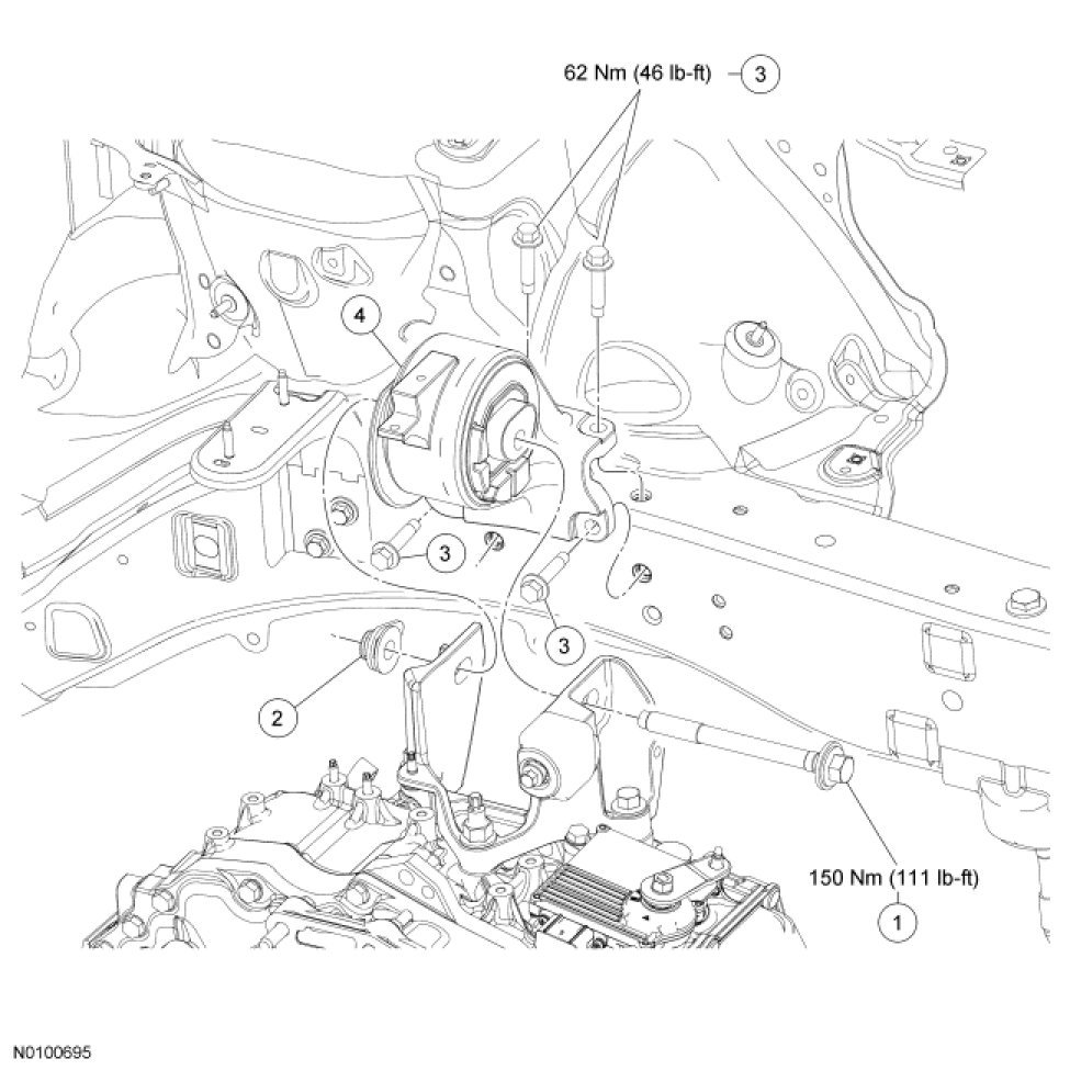 - Tighten to 62 Nm (46 lb-ft).