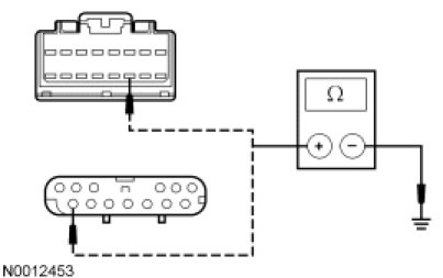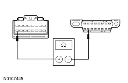 - Measure the resistance between the LCM C2145a-16, circuit 915 (PK/LB), harness side and the DLC C251-10, circuit 915 (PK/LB), harness side.