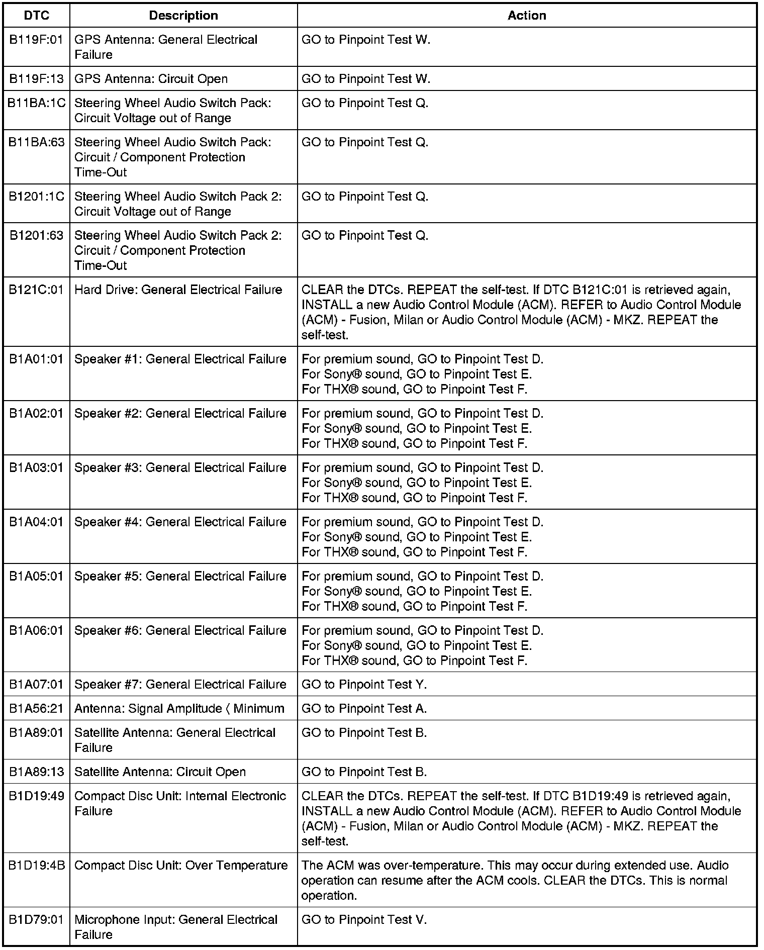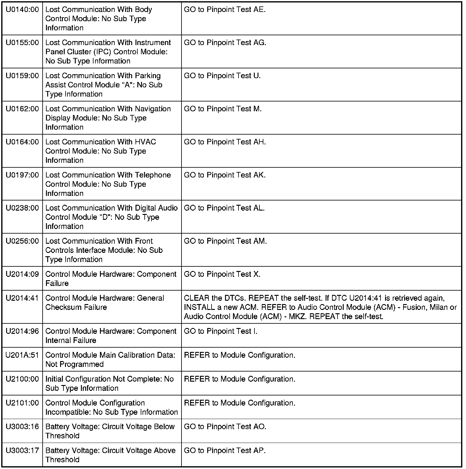 NOTE: This module utilizes a 5-character DTC followed by a 2-character failure-type code. The failure-type code provides information about specific fault conditions such as opens, or shorts to ground. Continuous memory DTCs have an additional 2-character DTC status code suffix to assist in determining DTC history.