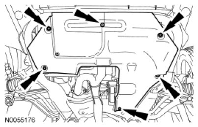 Remove the 4 screws from each side and position the RH and LH fender splash shields aside.