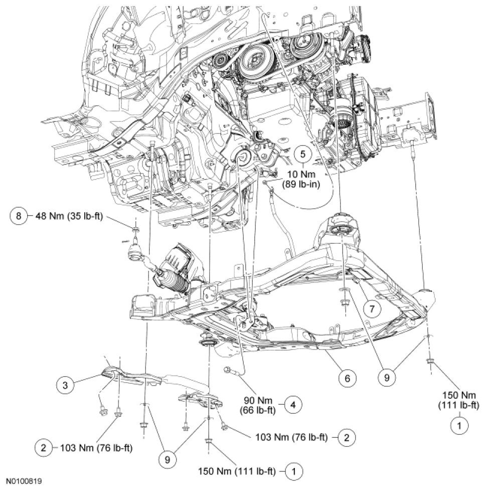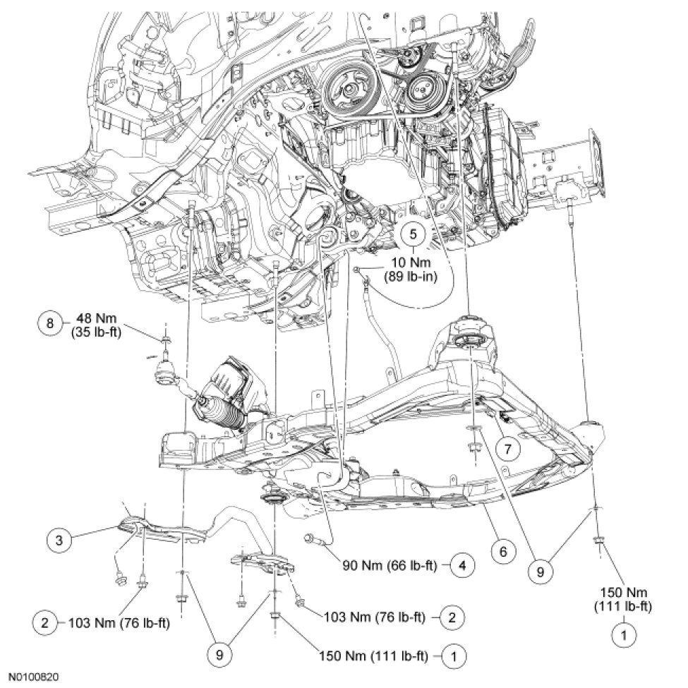 13. NOTE: The steering gear is not removed with the front subframe and must be positioned aside.
