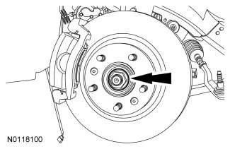 9. NOTICE: Do not tighten the halfshaft nuts with the vehicle on the ground. The nuts must be tightened to specification before the vehicle Is lowered onto the wheels. Wheel bearing damage will occur If the wheel bearing Is loaded with the weight of the vehicle applied.